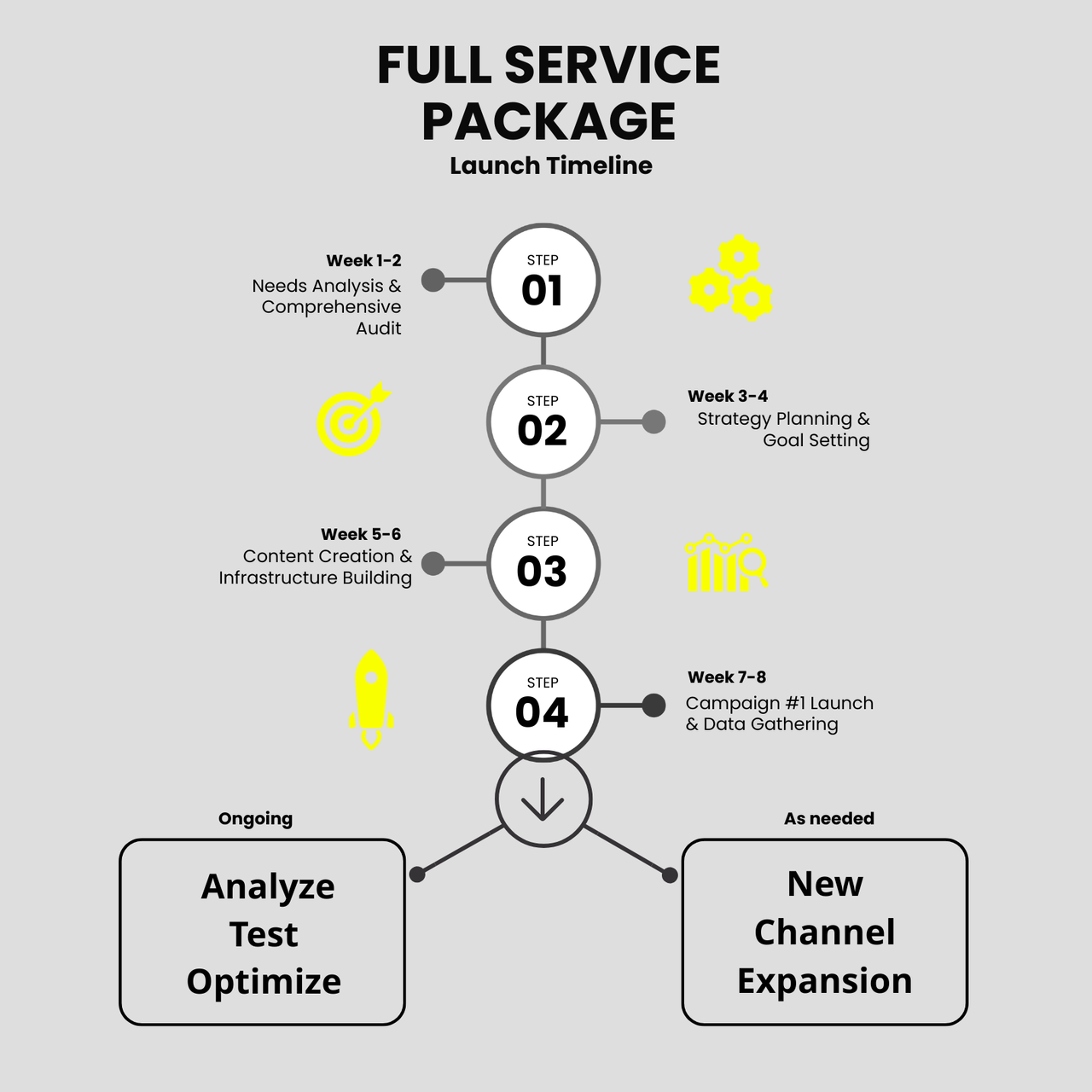 The Dirty Work: Establish buyer personas, KVPs, align message and customer journey across channels.
